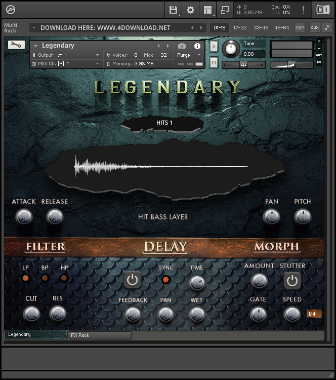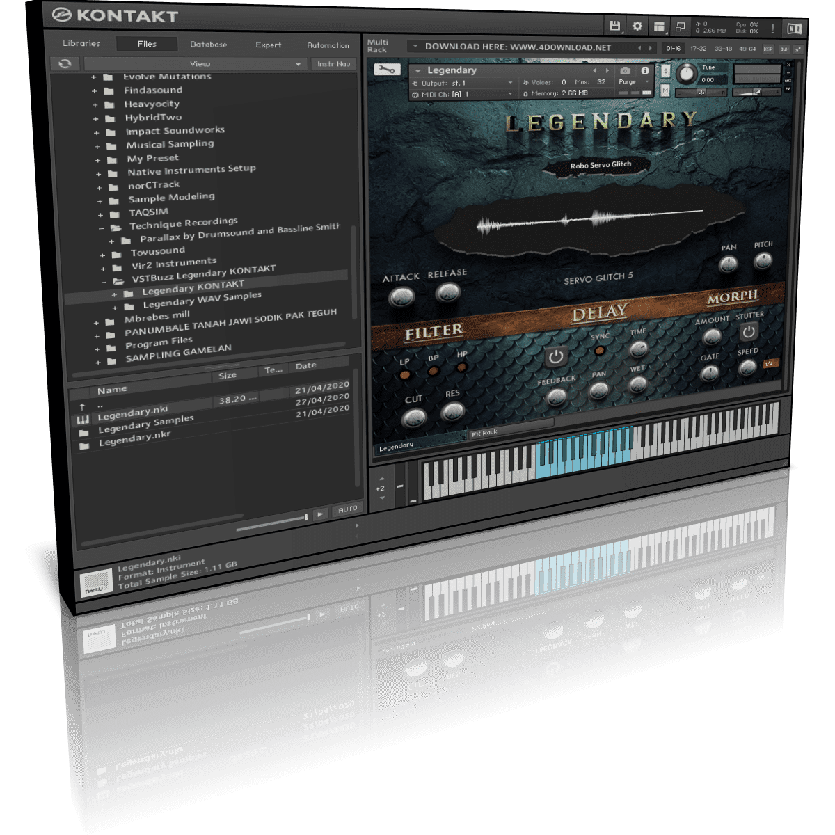Legendary is a cinematic sound design and scoring tool for Kontakt, designed for creating cutting edge sounds for dramatic, high energy, cinematic music.The library contains over 450 samples recorded in 96kHz/24bit split into the following categories: