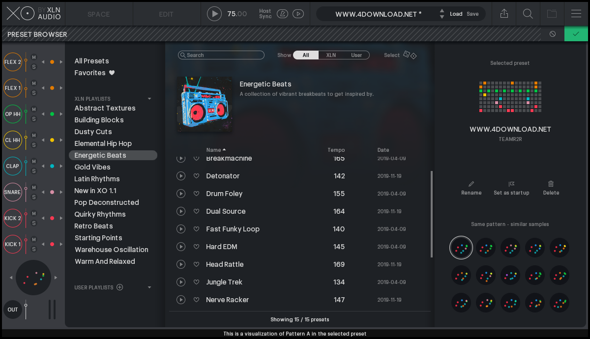 XO identifies and collects one-shot samples stored anywhere on your computer or hard drives and sorts them by similarity. It brings your samples of choice into a new creative context that facilitates experimentation. You can use XO as stand-alone or with your favorite DAW along with other plugins. You load XO as an instrument into your DAW. XO is used preferably but not exclusively for beat making and rhythm production using, what you consider to be drum sounds. Browsing and editing sound become a part of your creative processes instead of disrupting your workflow.