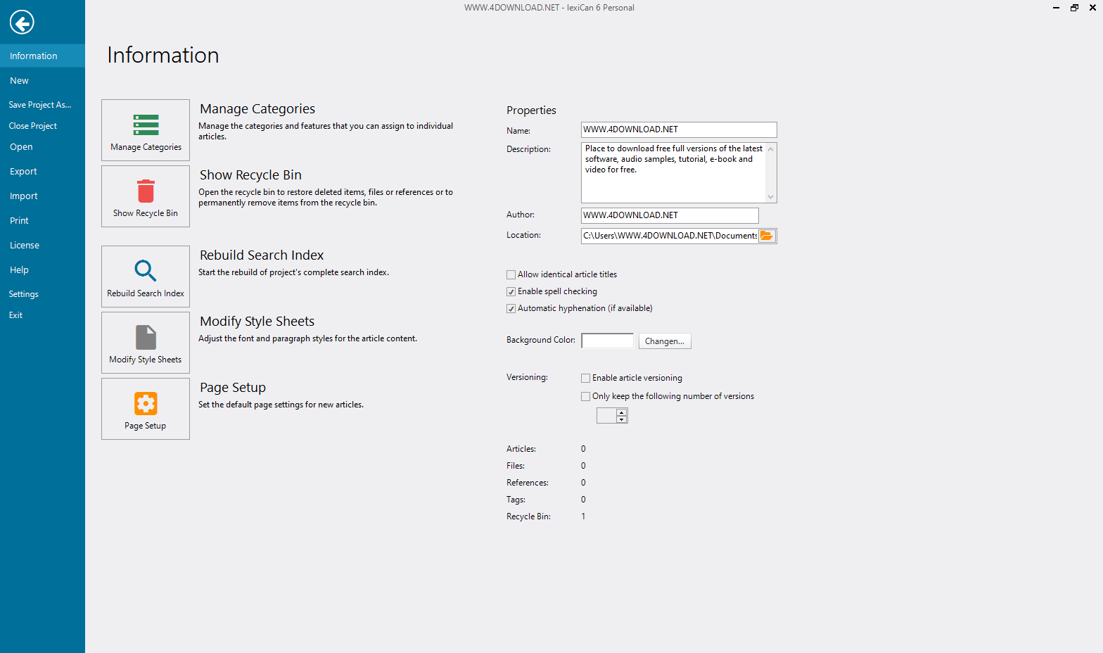 You are looking for a really simple, comfortable and free knowledge management software? You finally found it: lexiCan Personal FREE! Easy to install, easy to use. Organize and structure your knowledge and information now! With lexiCan you can effectively store and clearly structure virtually all knowledge obtained across various personal and professional fields.