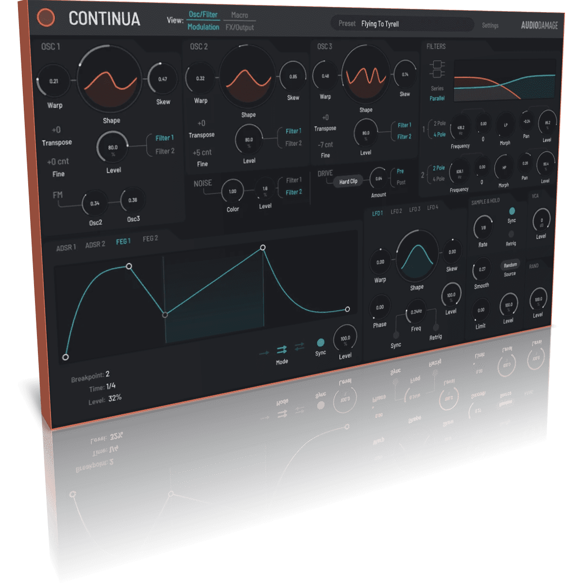 Continua is a virtual analog synth with a twist: a continuously morphable threesome of oscillators. With three interconnected controls defining the wave shape, Continua has a virtually limitless supply of waveforms, especially when you add cross modulation and noise in to the mix.