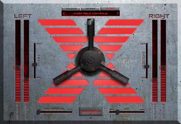 The Hyperdrive is designed to give you swift, powerful control over utilizing two haas effected delays. This creates the space, timbre, and character of your dimensions. The Warpdrive can be thought of as a reverb or the “Warp Field”. This is the glue part of your plugin, designed to connect the space of the Hyperdrive and the Engine together into on cohesive sound.