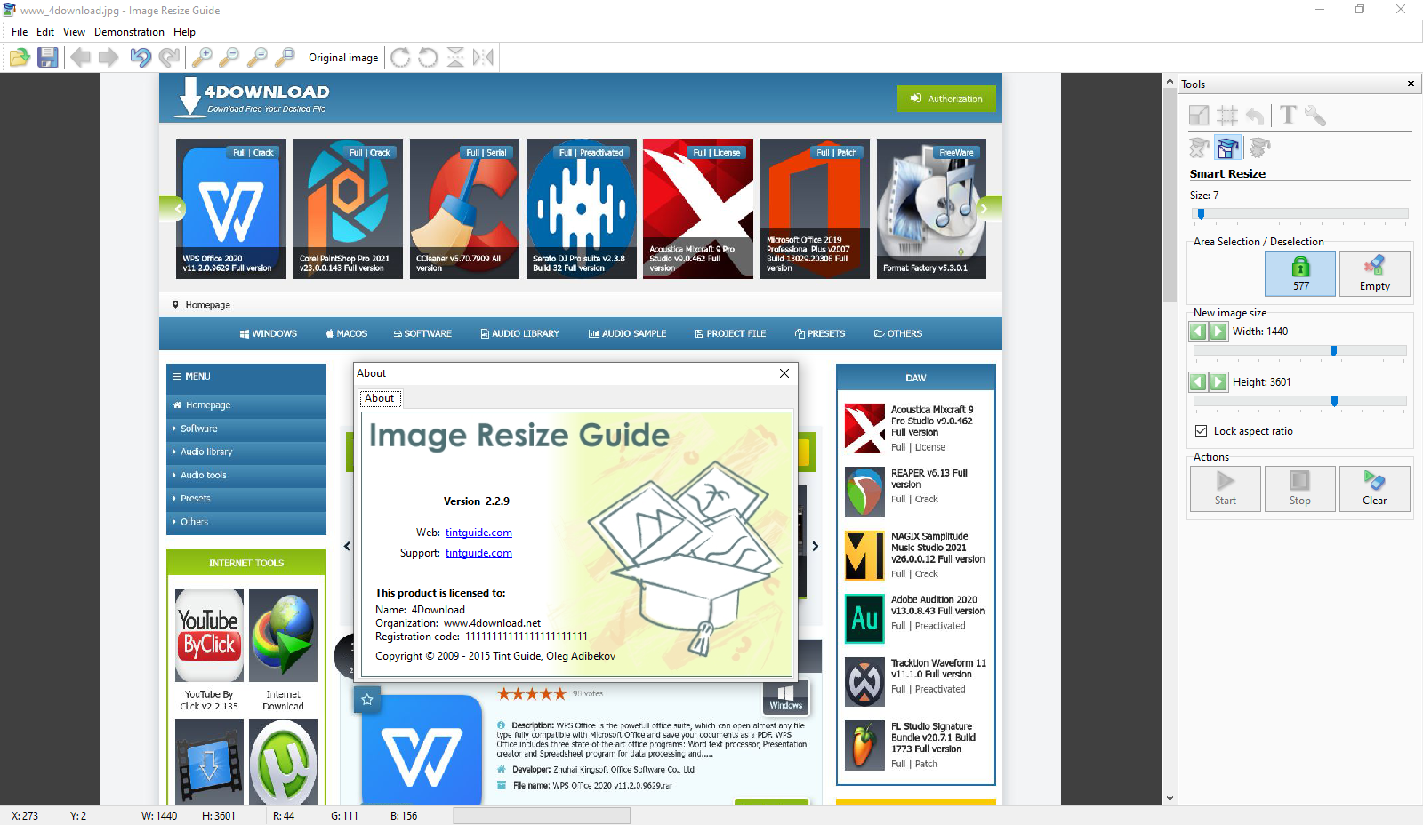 - Smart Size – changes the image size removing “unnecessary” portions while keeping the “important” features intact.