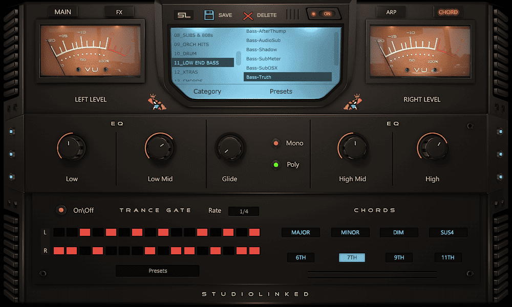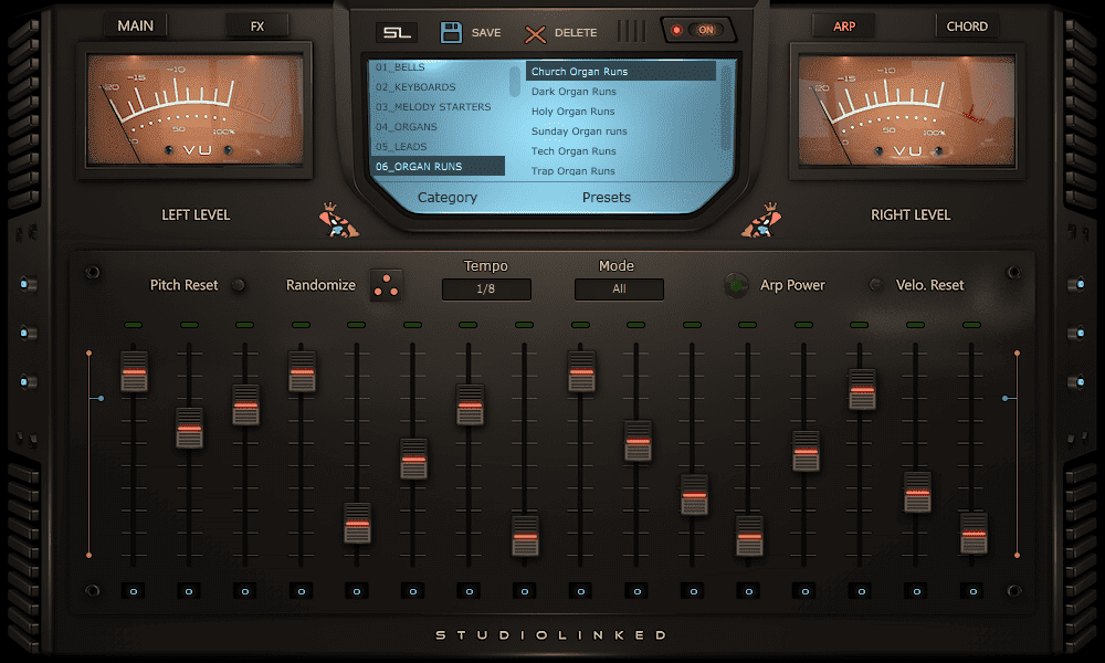 - 18 instrument categories including OJ Da Juiceman Chants, drum kits, church chords, melody starters, keyboards, organs, and more