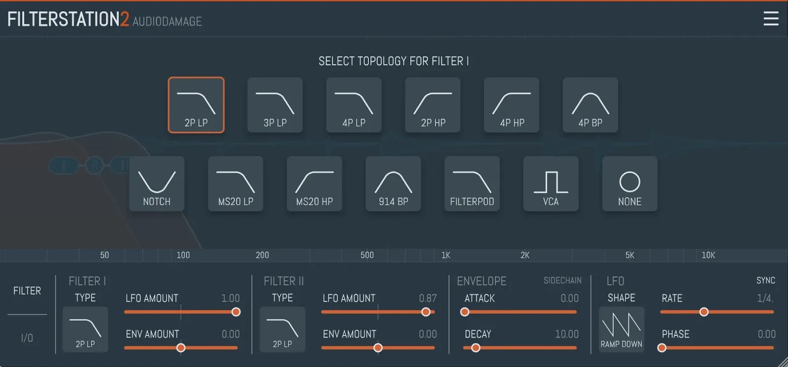 Filterstation2 is the Audio Damage take on the classic serial/parallel/stereo dual filter topology, made famous (and some would say "indispensable") by the Sherman Filterbank and its many clones. With twelve filter algorithms, an envelope follower with stereo sidechain input, a full FSU section for extra signal hacking, and an easy-to-use interface, Filterstation2 is a valuable addition to any producer's toolkit.