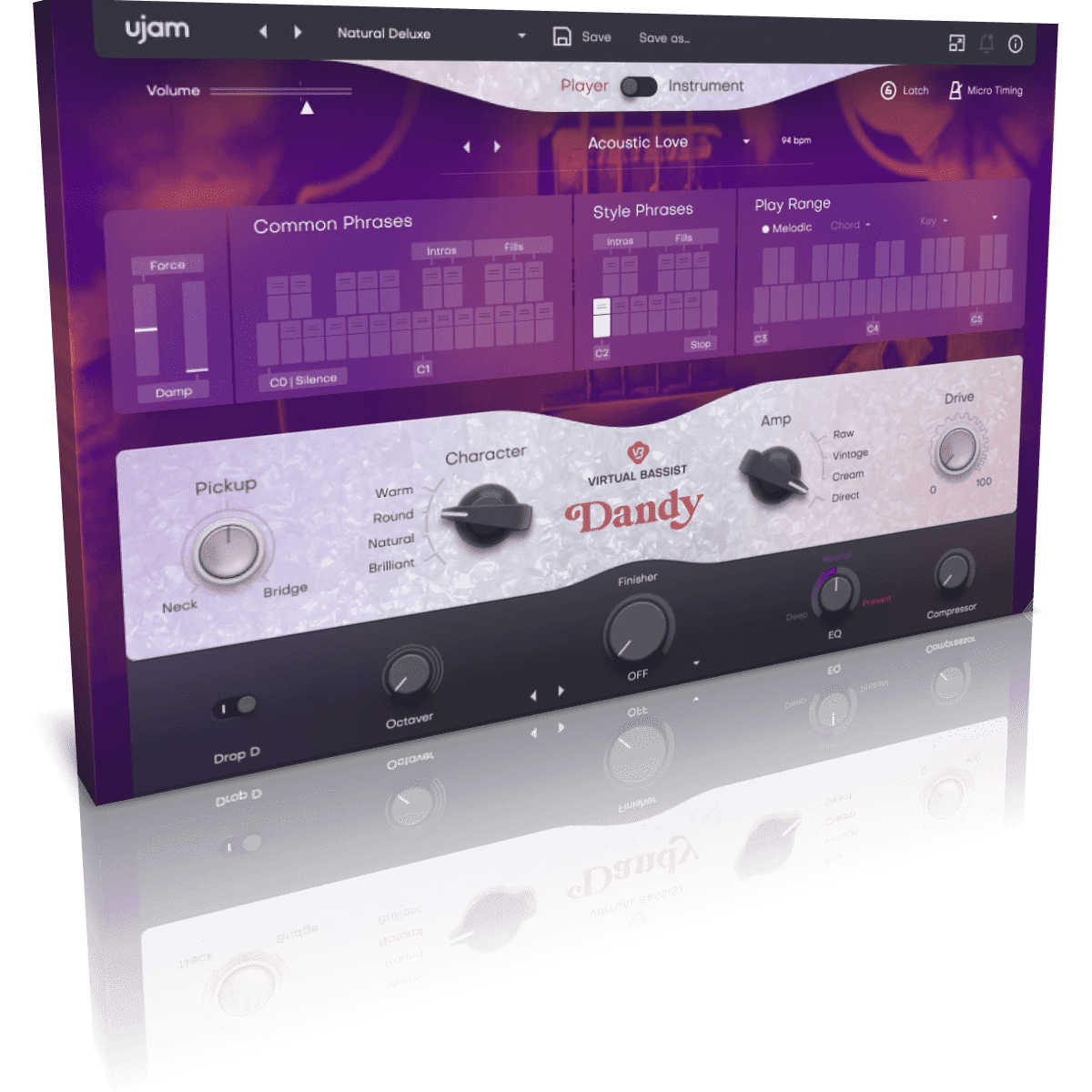 DANDY automatically follows the key and chord you play and intelligently selects the most musical articulations to make your tracks shine. The result is a fantastic bass delivered quickly and without drama.