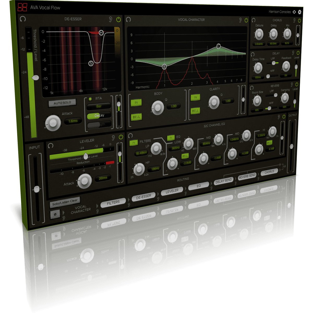 The AVA Vocal Flow is an all-in-one signal processing suite for mixing vocals in your music. It contains 7 routable signal processing elements along with input and output controls. The AVA-VF is a "greatest hits" compilation of Harrison's most sought-after console elements, specifically selected for mixing vocals!