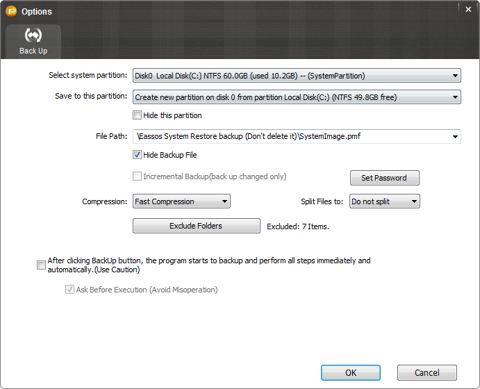 Easily back up all files of system partition, including system files, installed applications & individual files.