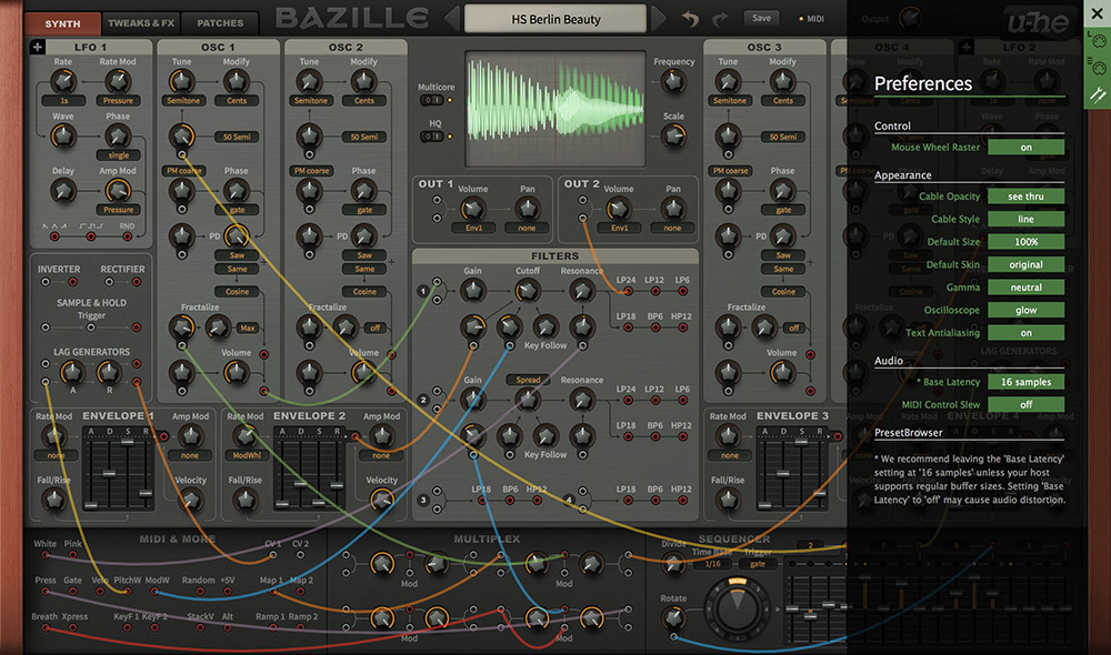 Bazille is highly unusual for a modular synth. Although the filters are traditional analogue models, the oscillators are unashamedly digital: They combine the two technologies that made digital synthesis affordable (and analogue synths suddenly unfashionable) in the