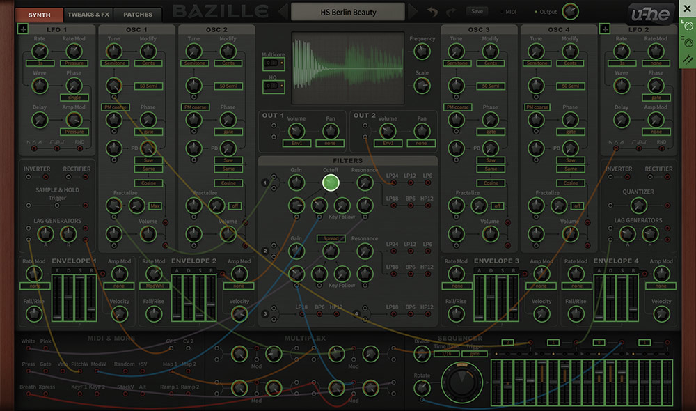 Bazille: Monster from the deep - The second spawn of the Berlin Modular project, Bazille is a large polyphonic modular system with digital (PD, FM based) oscillators, multimode filters and plenty of modulation options. With so much connectivity to explore, patching in Bazille should keep you fascinated for many years – it’s definitely a “geek machine”! Bazille is a large modular system combining digital oscillators with analogue-style filters and modelled effects, with a flexibility that only modular patching can provide. After ACE, the second spawn of our ongoing Berlin Modular project, this one is a very different, much larger beast…Those in the know have been waiting for this since 2009.