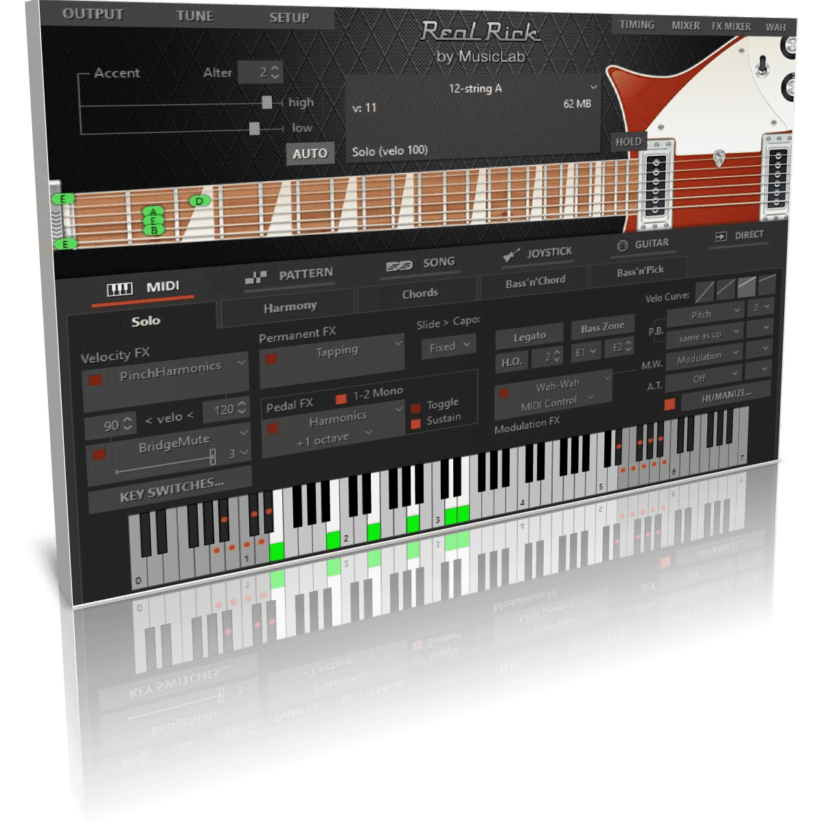 RealRick - sample-based virtual instrument with an innovative approach to guitar sound modeling and guitar techniques emulating on a standard MIDI keyboard. RealRick provides incredible playability based on the unique performance modes and easy-to-use keyboard layout as well as the advanced key/pedal/velocity switch system allowing a keyboardist to perform guitar parts with a whole new level of realistic expression. RealRick covers practically all sounds, articulations, and techniques a professional guitarist can produce on his Rickenbacker®, including mute, bridge mute, harmonics, pinch harmonics, unison bend, strumming, picking, chord chopping, scrapes, and much more...