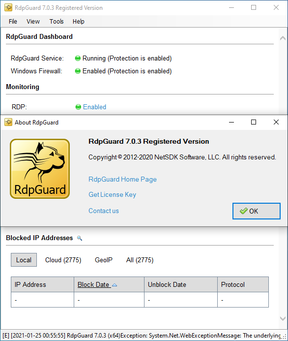 How can you protect your server from brute-force password-guessing attacks on RDP? The answer is RdpGuard - powerful tool that allows you to protect your Remote Desktop from brute-force attacks. RdpGuard works as a Windows Service. Your Windows Server will be protected even if nobody is logged in.