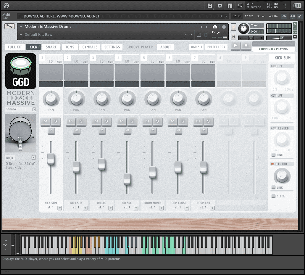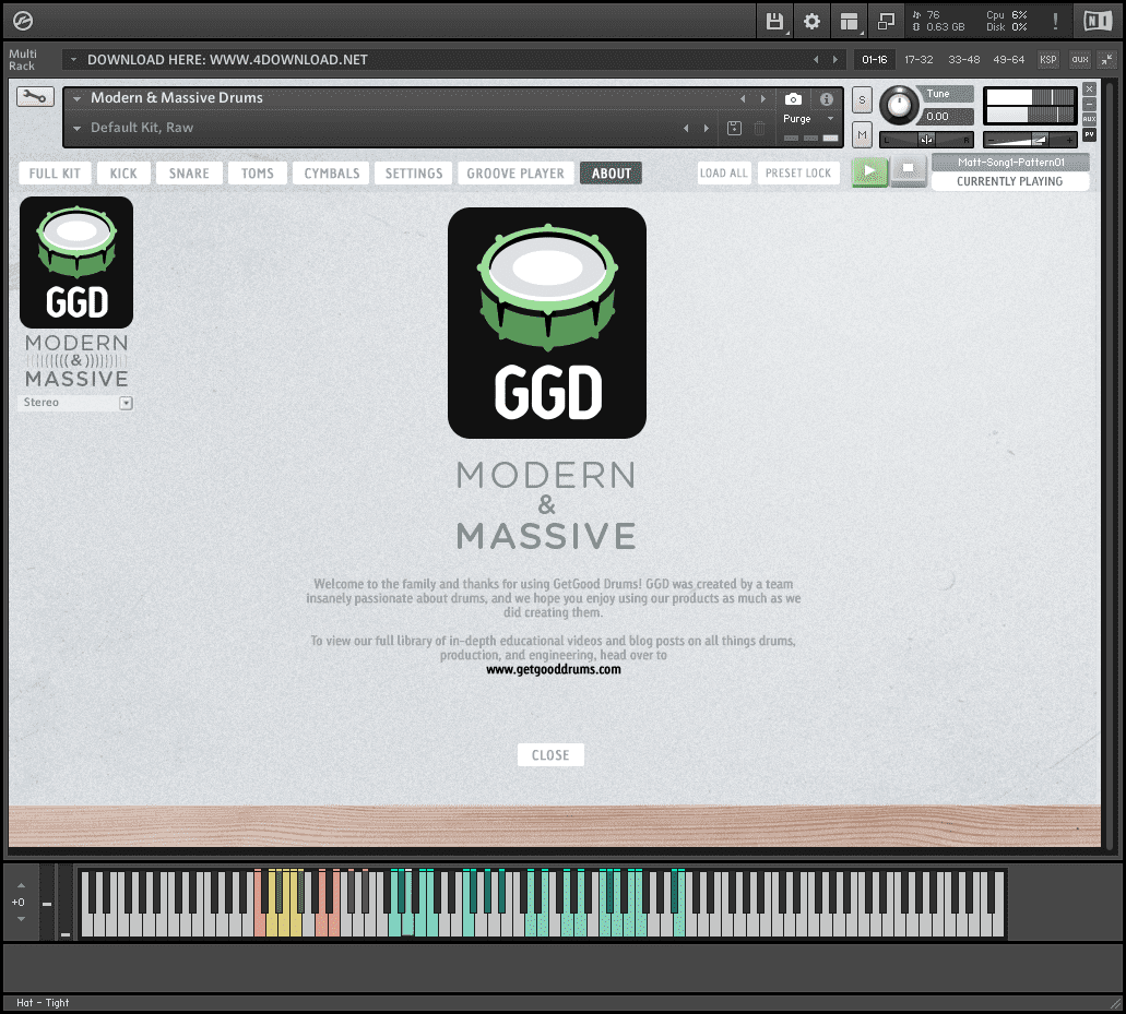 - Modern & Massive is a Player Library (with full NKS integration) and can be used with Kontakt’s Free Player – no need to buy the full version of Kontakt to use GGD!
