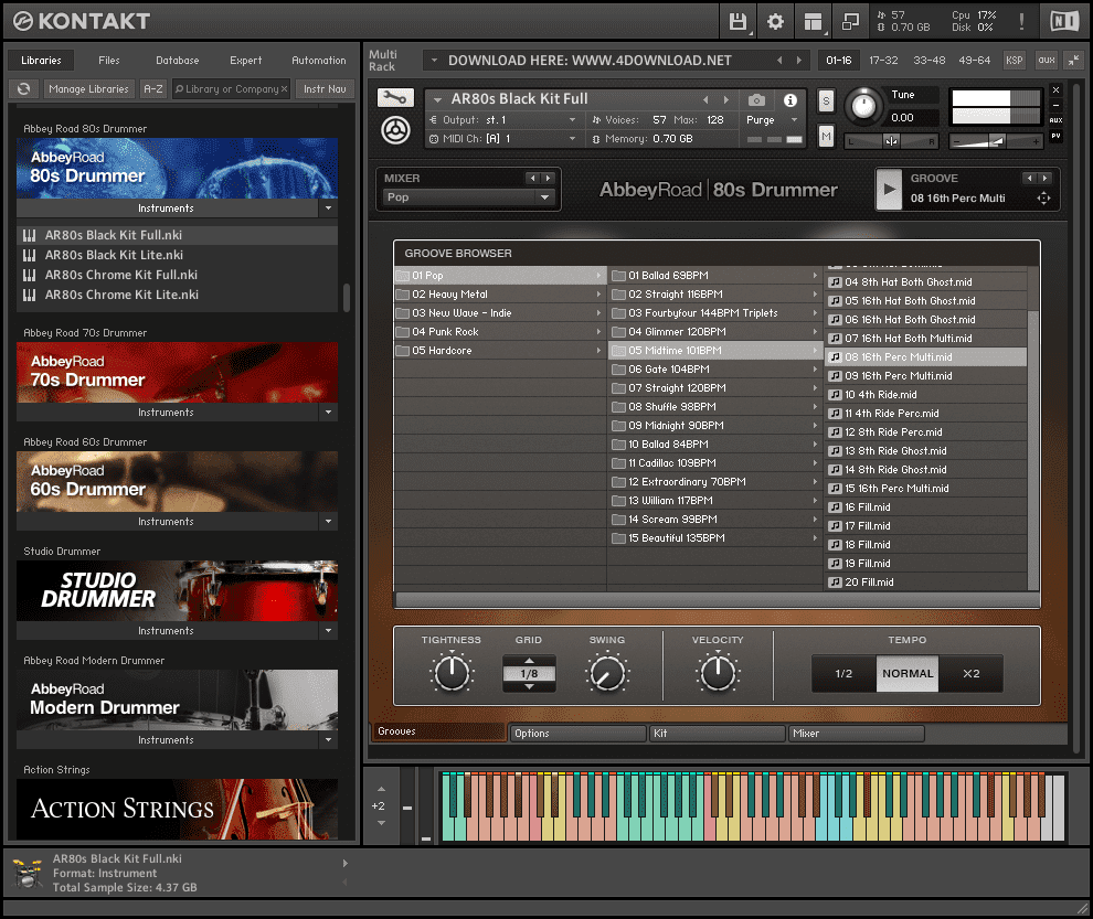 ABBEY ROAD | 80s DRUMMER is an enhanced version of the original ABBEY ROAD | 80s DRUMS, updated to integrate developments in KONTAKT. All the new ABBEY ROAD DRUMMER instruments include the advanced Mixer Section and Groove Library feature from STUDIO DRUMMER.