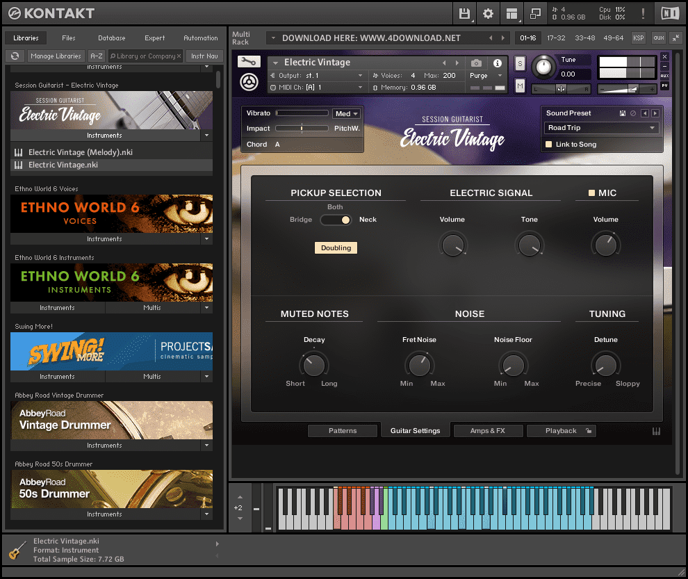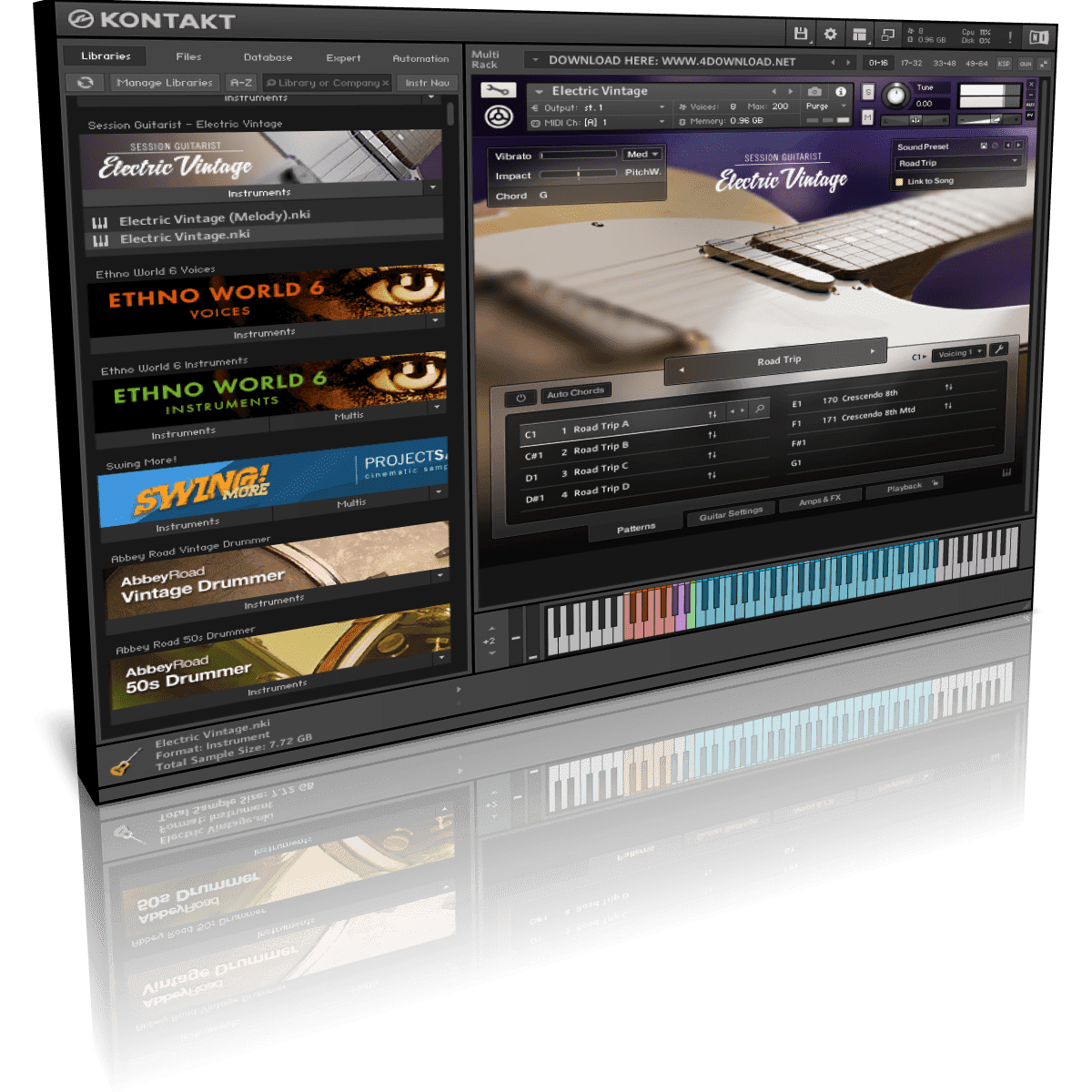 ELECTRIC VINTAGE delivers the iconic sound of one of the world’s most versatile electric guitars, captured from an original, late-50s model built in the USA. It combines a powerful, playable engine with an enormous library of strummed patterns, picked arpeggios, and riffs – for practically unlimited creative combinations suited to everything from contemporary pop to rock, funk, dance, hip-hop, and film soundtracks.