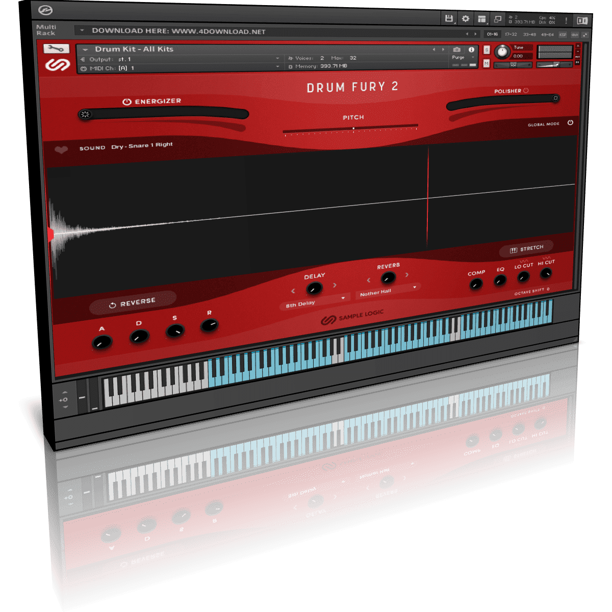 DRUM FURY 2 ups the ante on sound-shaping possibilities, squeezing every ounce of musicality out of these samples. This time around Sample Logic has added controls that can wildly transform audio into creative rhythms and mangled reversed soundscapes. With the new REVERSE capability and sample start controls, all samples (or just a selected few) can be played forwards, or backwards. Add a little delay / reverb and suddenly standard percussion hits transform into otherworldly drones, stingers and transition effects. Stretch just one sample across the entire keyboard with the new STRETCH button, perfect for high-pitched zings or rumbling growls. Shape your new creations with a full range of ADSR controls for sculpting the amplitude envelope of each sound, new to DRUM FURY 2. The low and high cut filters have been upgraded with full LFO automation to enable blistering Transformers-style gated effects, or slower filtered evolutions.