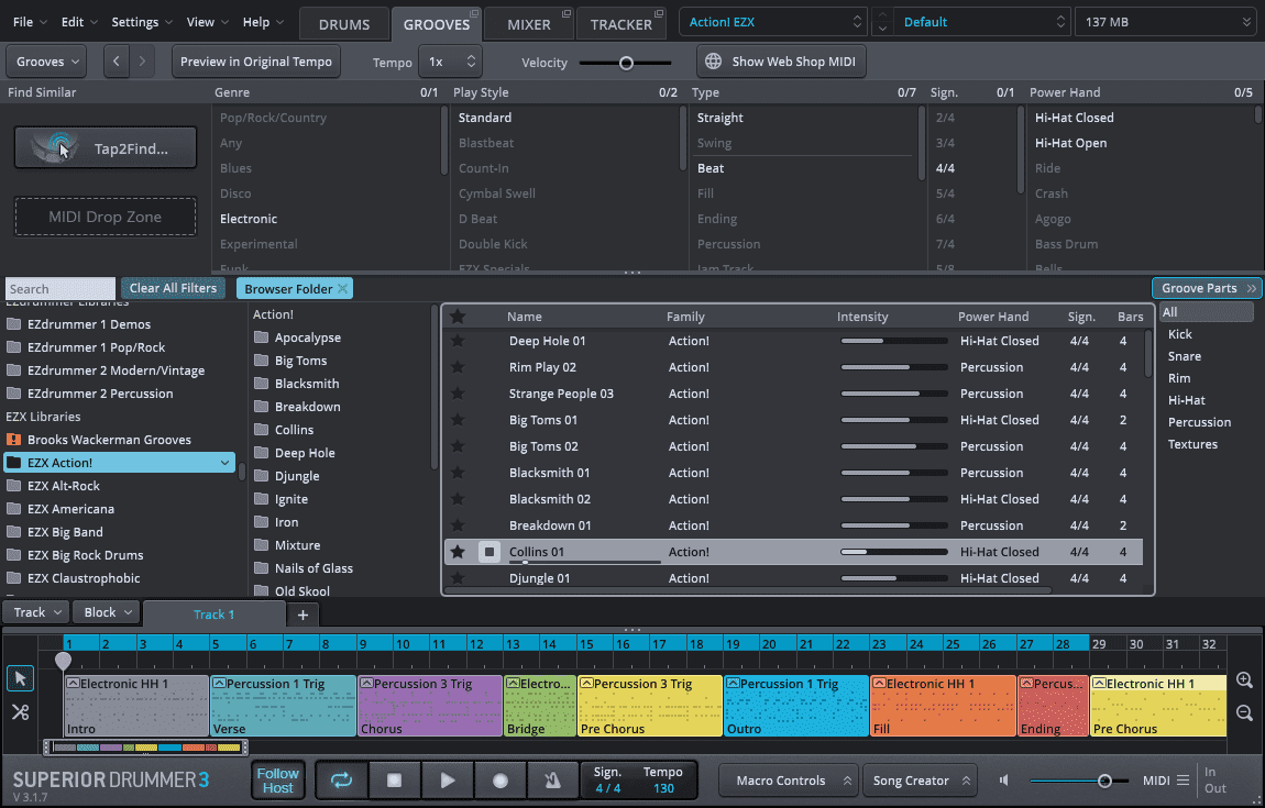 - 21 mix-ready presets with corresponding MIDI grooves