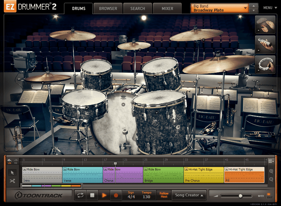 Can you hear it? That steady rattle of the snare, the sizzling melody of the ride and the subtle, round boom of the large open bass drum? Welcome to the Big Band EZX, which will enable you to produce the timeless swing that has been the epitome of jazz for close to a century and a half.