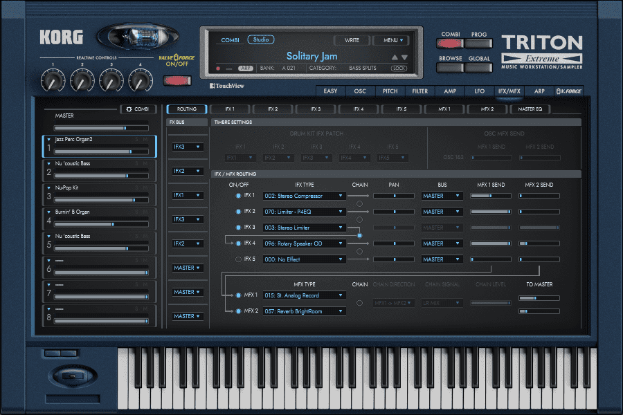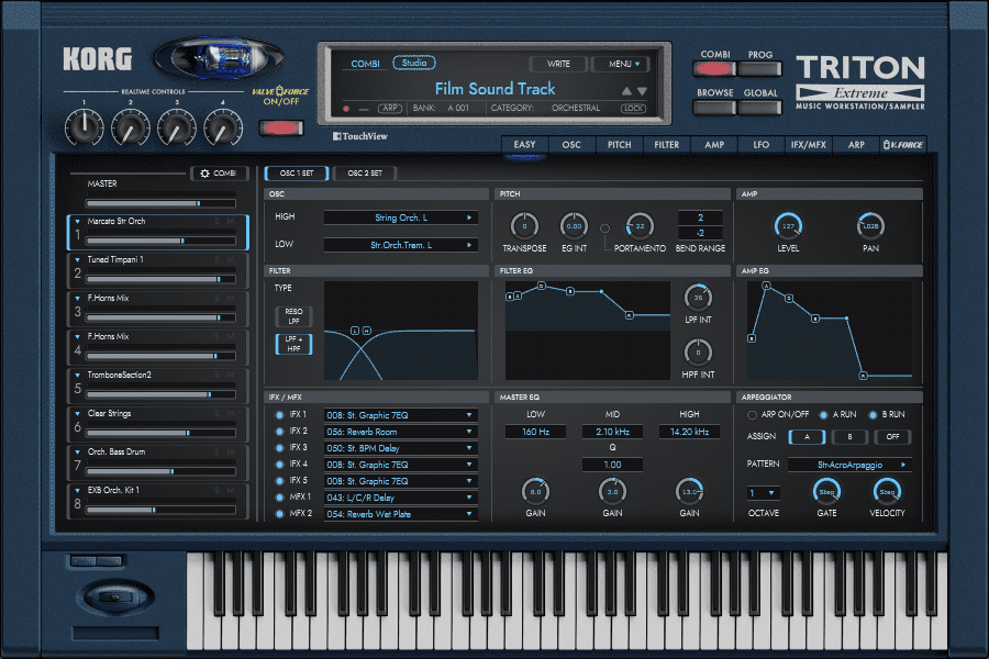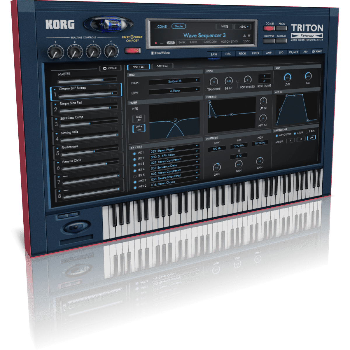 In 2004, Korg released the Triton Extreme, with many of the features of the Studio (such as the entire PCM ROM from the Studio model) plus the entire sample sets from Korg's best-selling Trance Attack, Orchestral Collection, and Vintage Archives expansion boards, as well as the most popular sounds from the Dance Extreme, Studio Essentials, and Pianos/Classic Keyboards collections. PCM data not available on any other Triton models was also included such as improved pianos and acoustic guitars.