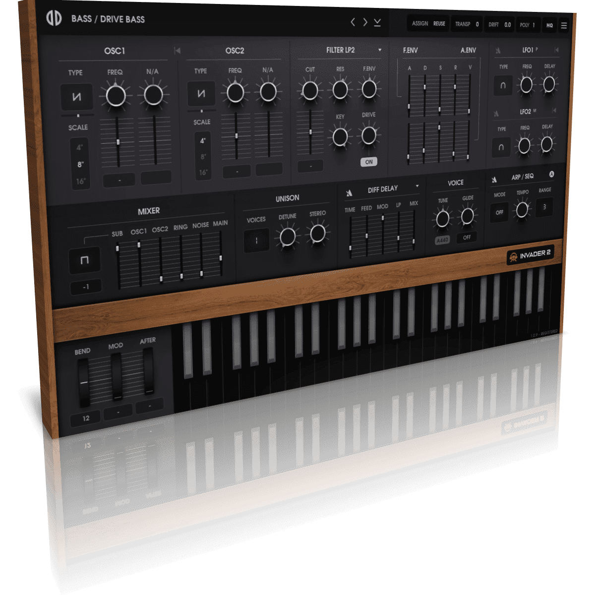 Invader 2 is an 8 voice polyphonic synthesizer. It was designed to be easy to program while still offering a wide range of sounds and possibilities.
