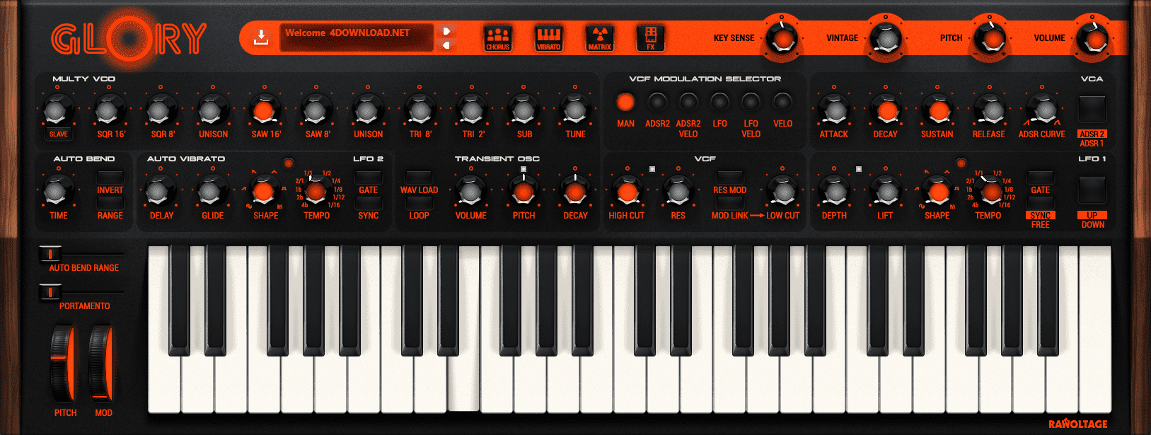 We created GLORY following the basics of classic synthesizer design. With it’s analog style oscillators and additional wav oscillators, we can create truly unique sounds. The sound of the real-time oscillators can be mixed with a single-layer wavetable synthesis, and can be enhanced with an additional wave (transient) sample. A custom sub oscillator is available to create a variety of bass tones. You can further shape the sound of the oscillators with High or Low Pass Moog or Hybrid style filters and FM-PWM modulation. You can improve the sound with the Matrix Designer, and for the final polish, use the FX section.