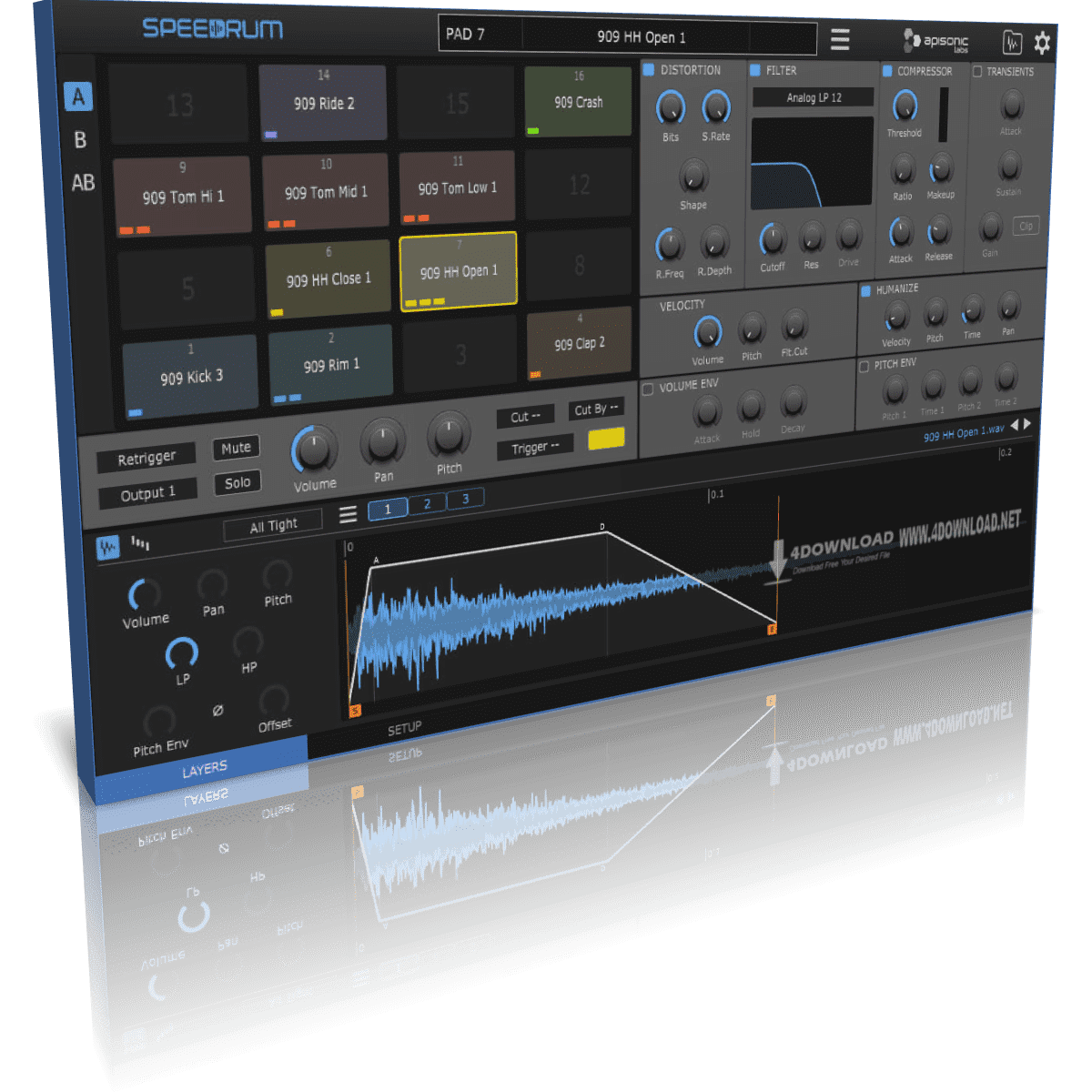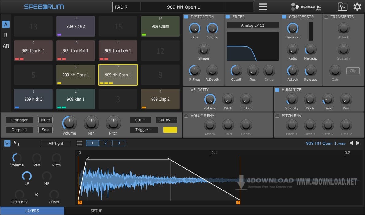 - Volume and Pitch envelope for every pad