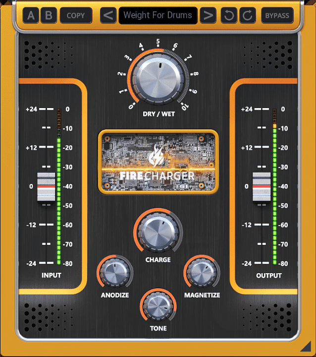 FireCharger can be used as a mastering plugin (at the end of the plugin chain) as well as to improve single tracks. It will add body and brightness to acoustic guitars and vocals, improve your drums and bass guitar tracks and charge electric guitar performance. Try it on everything!