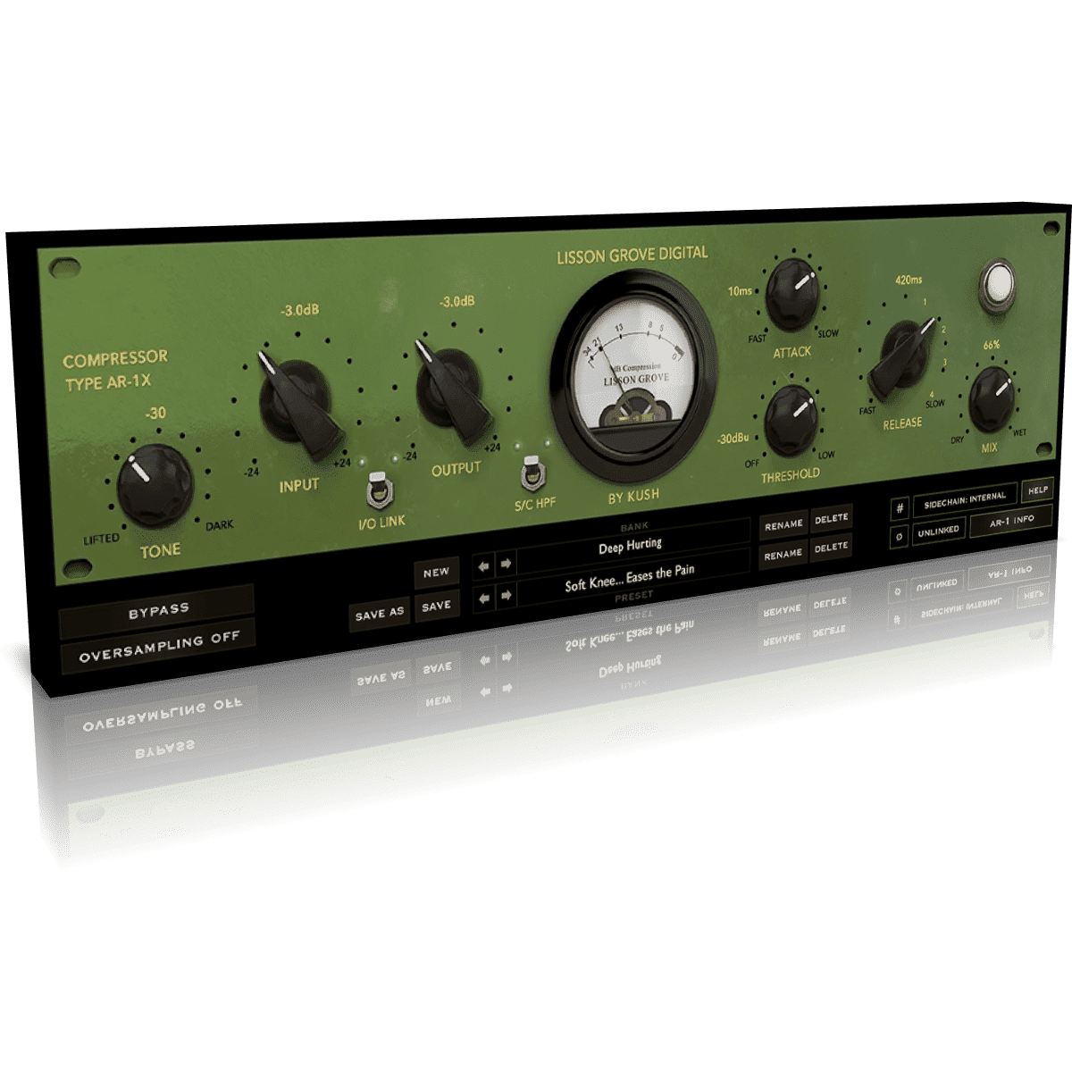 For starters, you get to see the actual values of the controls (!!!). The release is fully variable (as opposed to stepped) and both attack & release can be set significantly faster than the original hardware, allowing for a much wider range of compressive ‘voices’ and textures.