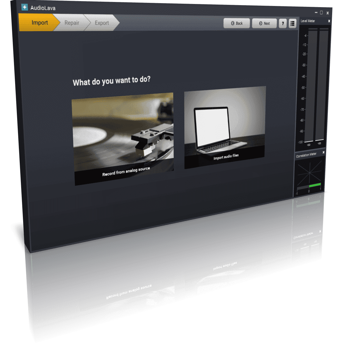 AudioLava is the ideal audio cleaning software for restoring and recording high quality audio from LP or tape to CD. The new version now runs on both Macintosh and Windows PCs and comes with a modern dark theme that appears crystal sharp on retina style displays. The user friendly interface helps to find the best way to bring old recordings back to life and guides the user through all the steps from recording, file import and track splitting to restoration and CD burning.