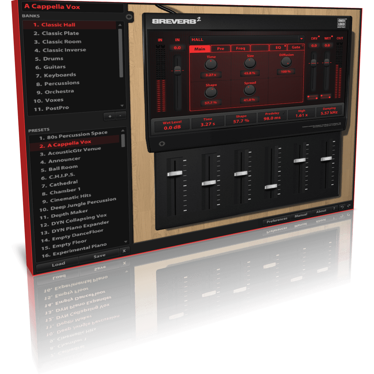 With BREVERB 2 you have the sound of more than 50 new ambient spaces at your fingertips. All ambience settings have been carefully crafted by Overloud engineers who referenced the preferred room and ambience choices of top sound designers. They cover a wide range of applications from mixing to post-production, and many of them are optimized for a particular instrument, from drums to vocals to guitars etc. Don't waste time flipping through dozens of different reverb plug-ins, looking for the right room sound. With BREVERB 2 you can find it in one click, with no compromises in sound quality.