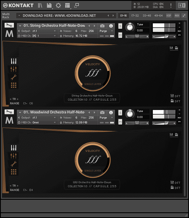The majesty of Metropolis Ark 3 comes into play when you combine the bombastic percussion with the percussive orchestral sections. Write complex rhythms and driving melodies with 11 sections plus a grand piano focused on short notes, repetitions, and clusters. Consistent articulations across strings, woodwinds, and brass means you can play instruments together easily, and add depth and color to your percussive foundations.