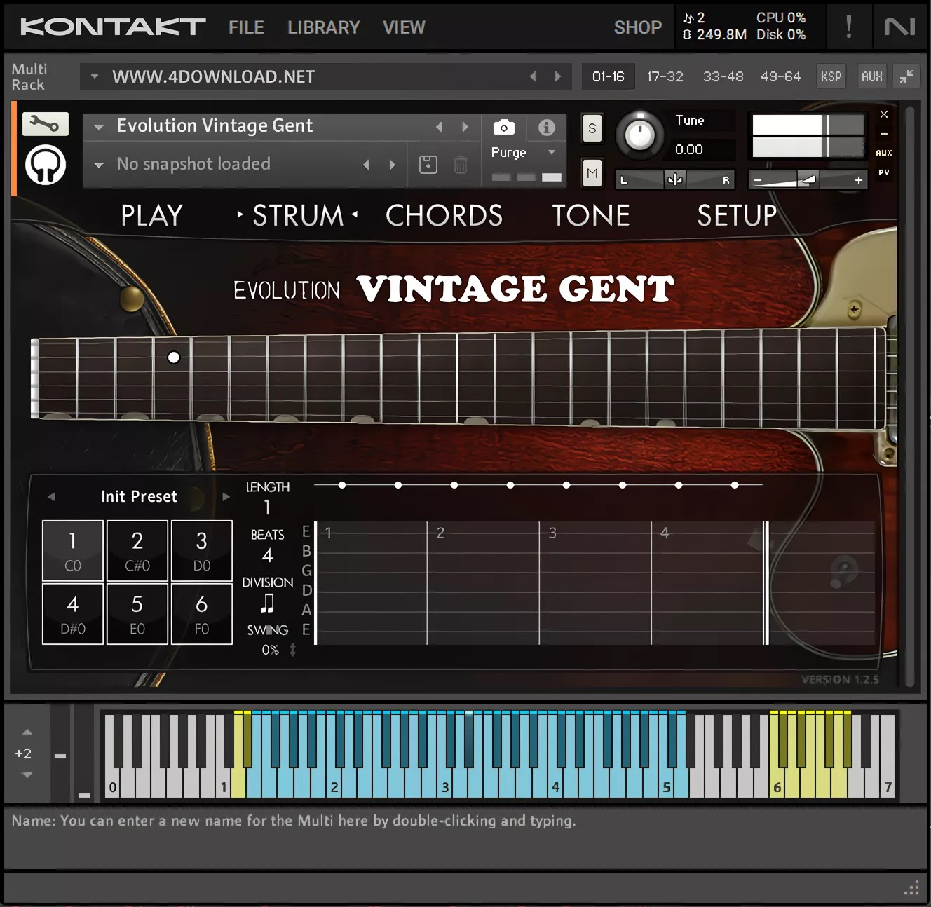 Evolution Vintage Gent is based on our Evolution engine, which provides you with a wealth of appointments: an innovative strumming pattern editor, automatic chord detection, and a comprehensive collection of built-in effects. If you've used any of our guitar or bass libraries that use the Evolution engine, its interface and workflow will be very familiar to you.