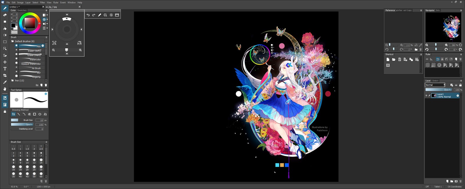 OpenCanvas is a painting software that is suitable to beginners to advanced users. There are various brush types, multifunction filter to easily apply effects and visualize an illustration, and features an unlimited layer possibility.