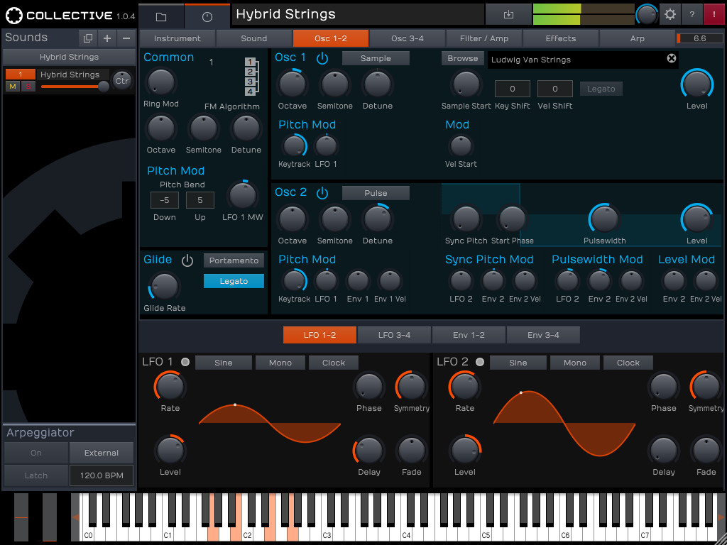 - Classic virtual-analog waveforms like saw, triangle and pulse with pulse-width modulation