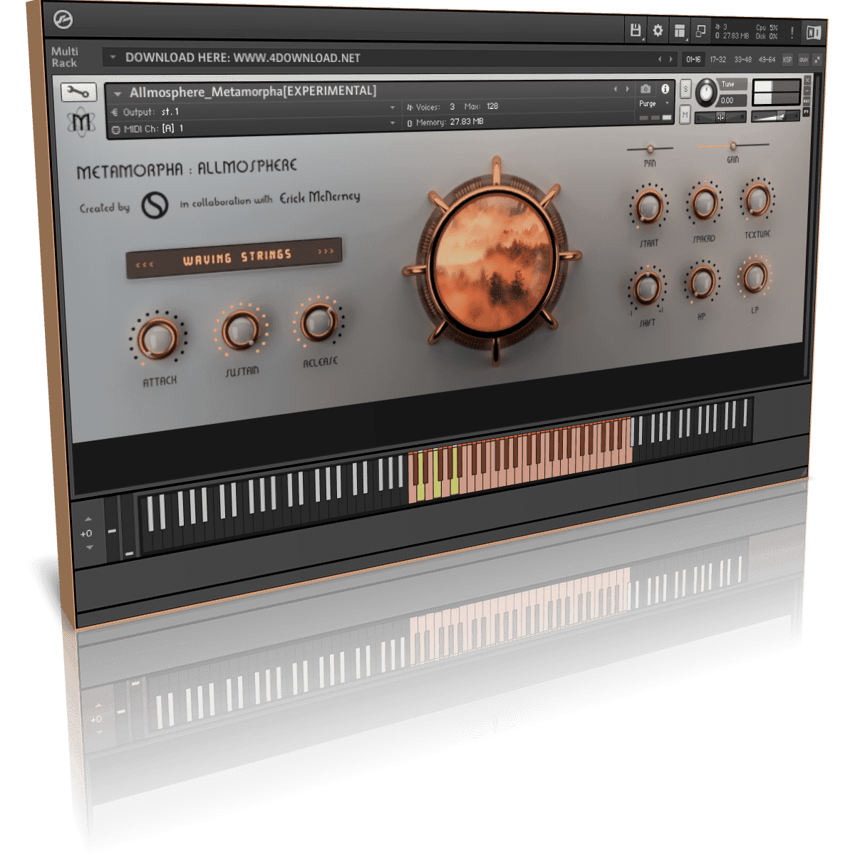 Metamorpha is the first in a new smaller series of libraries we’ll be releasing. The idea behind this is to have beautiful little instruments at your fingertips that inspire you and that do not have an overcomplicated engine. First of all it’s just plug&play. The Instruments will both be based on the original recordings of a bigger library, with pushing it into a different direction mood wise tough. But also sampled instruments, that have been recorded for this series exclusively like a Glockenspiel, various Bells etc. Metamorpha:Allmosphere is based on our recent library Broken Bells, which has been produced in collaboration with Erick McNerney, who is best known for his work with Beautiful Void Audio, Halflightsampling and Audio Reward. Paul took the original Bell and Bowed recordings Erick made and created a vast array of totally different sounds. From beautifully resonating Glass Pads over Soaring Sustains to even Synthesized String and Brass Ensembles and much more. But don’t let the small amount of UI controls fool you, this library can sound big! We included a few features, which help you to create a rich, full sound like the texturizer or the spread function. But enough talking! Dive into the beautiful nostalgic and disturbing nature of Metamorpha:Allmosphere