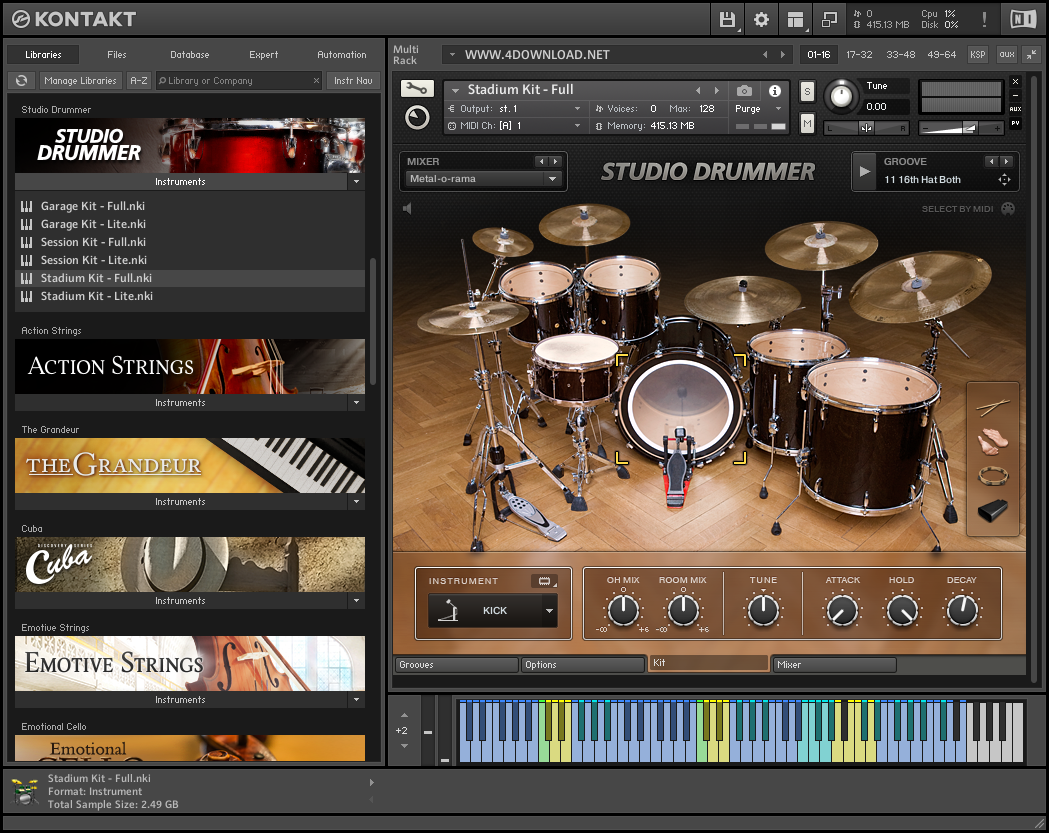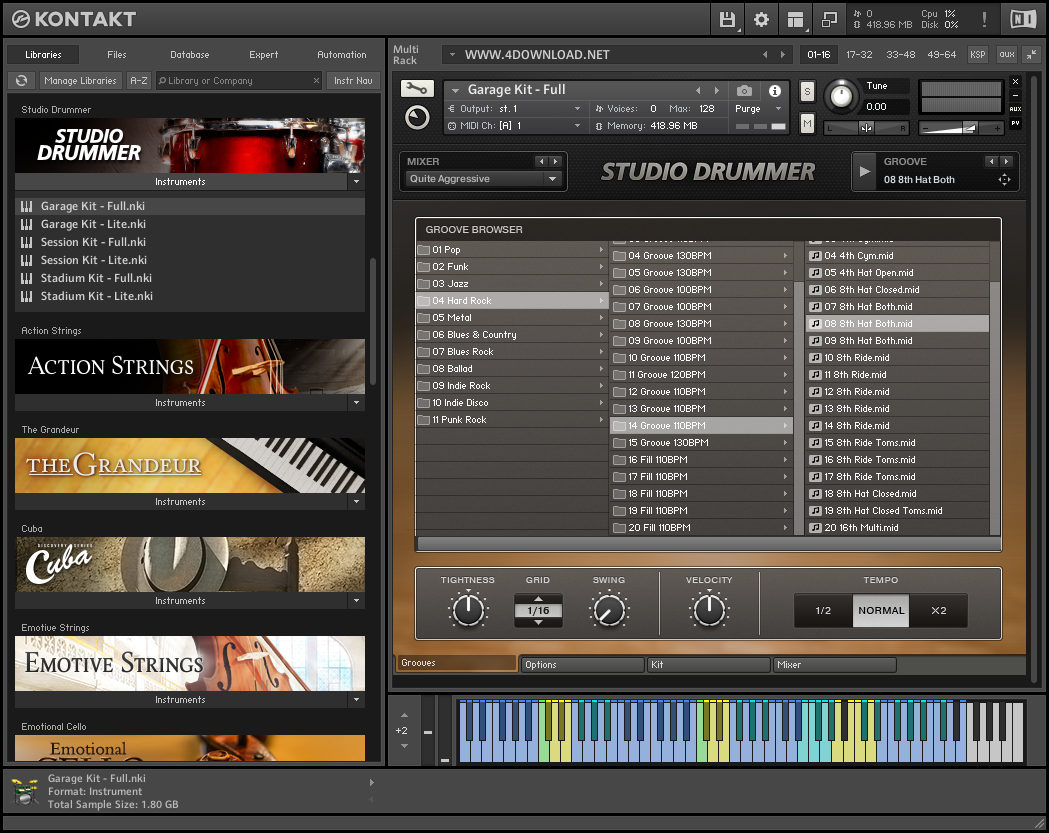 What good is an awesome drum kit without the skills to play it? STUDIO DRUMMER gives you the chops on a plate, with over 3,500 drum patterns and fills in a wide range of genres and styles. All grooves were recorded live especially for STUDIO DRUMMER, for 100 percent realism.