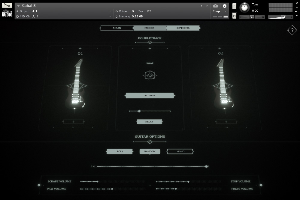 The new breed of virtual guitar instruments is here! Bring 8-string power to your music. Cabal 8 features tons of fresh and cutting-edge possibilities detailed below. For one and a half years of continuous creation of Cabal 8, Wavelet Audio have implemented many features that allow you to use the guitar flexibly as never before. Their instrument is convenient for writing extremely detailed MIDI parts, as well as for quick sketches in real-time.