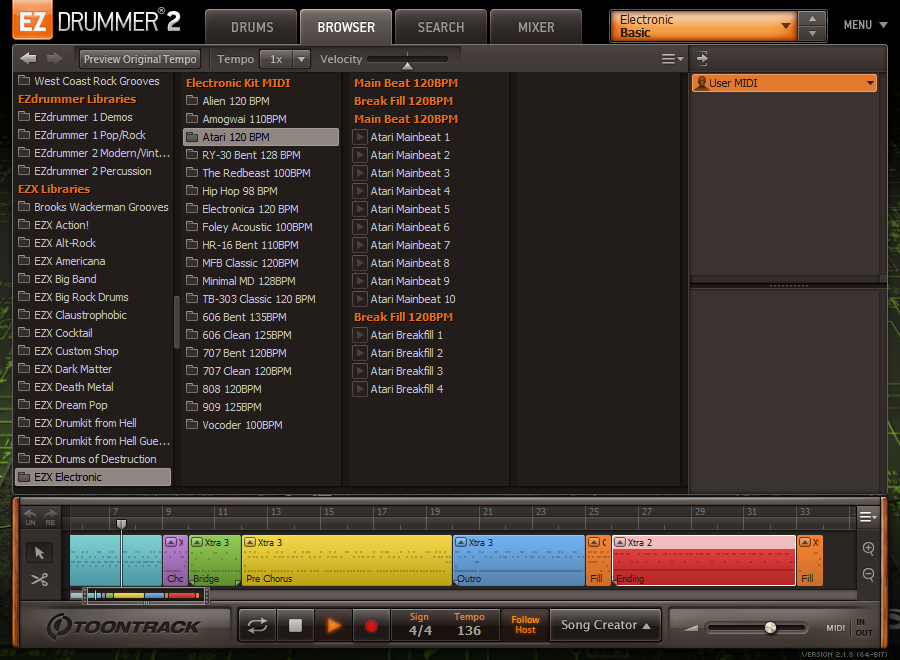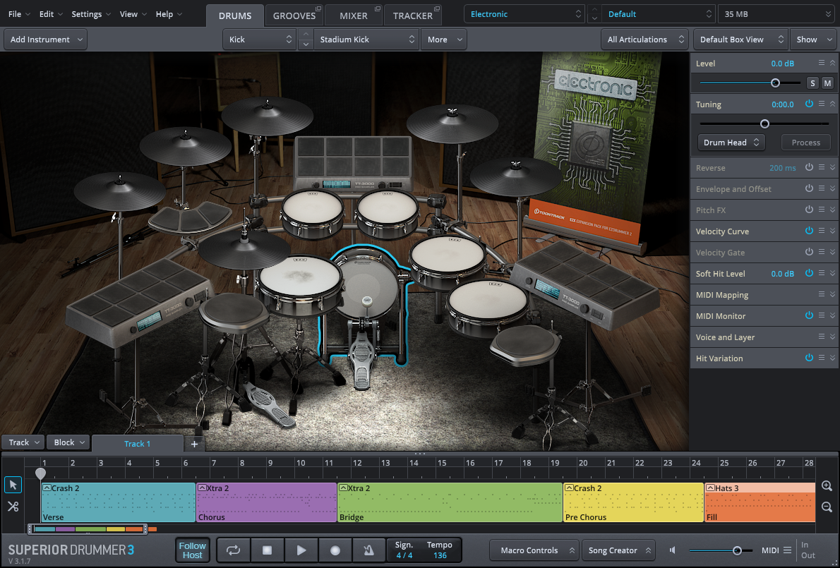 The Electronic EZX presents a mind-blowing collection of classic, circuit bent and resampled electronic drum sounds. It includes as much as 33 carefully crafted preset kits as well as a large selection of optional snares and kicks, all designed to cater to a broad range of genres and production styles.